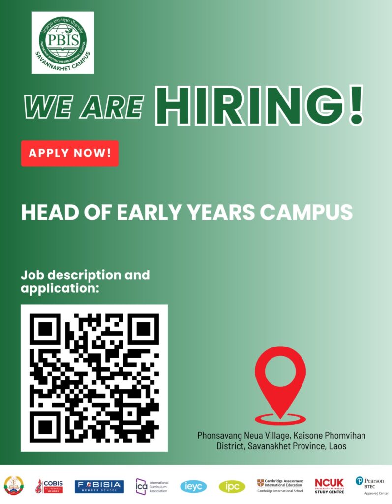 Categories Uncategorized HEAD OF EARLY YEARS CAMPUS Post author By admin Post date December 29, 2025 No Comments on HEAD OF EARLY YEARS CAMPUS ← HEAD OF LAO PROGRAMME → HEAD OF SECONDARY CAMPUS Leave a Reply Cancel replyYour email address will not be published. Required fields are marked *Comment * Name * Email * Website Save my name, email, and website in this browser for the next time I comment.